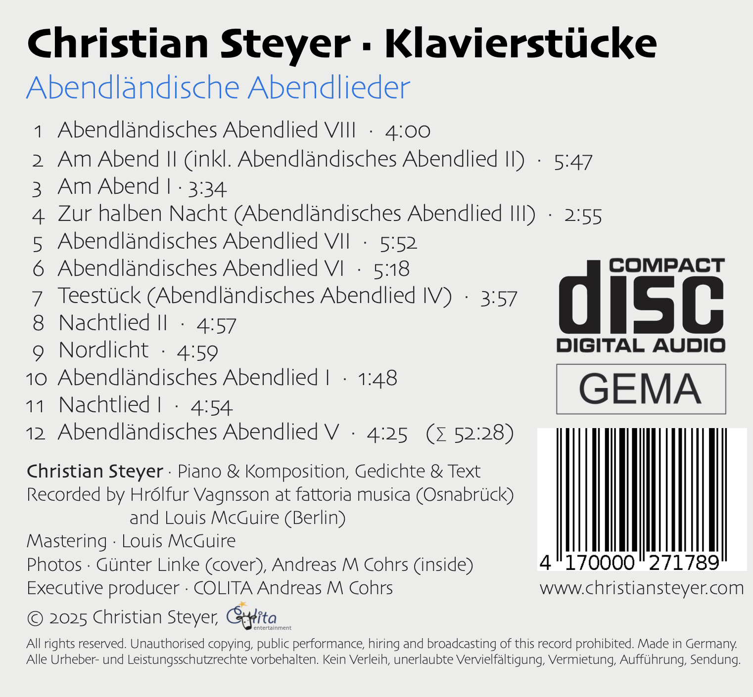 CD Klavierstuecke20.00 EURChristian Steyer · Abendlaendische Abendlieder